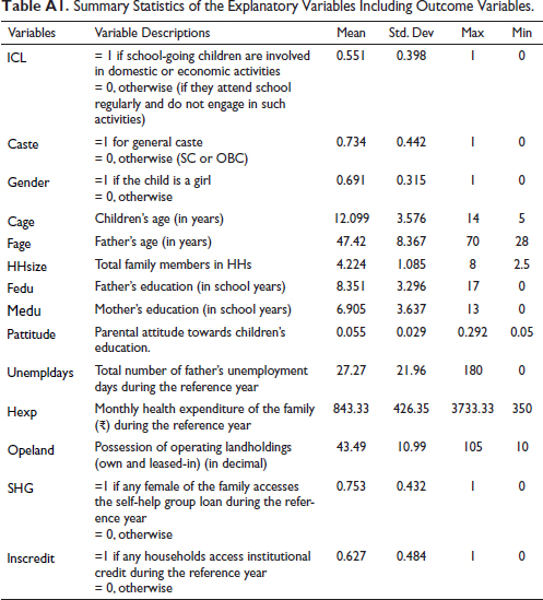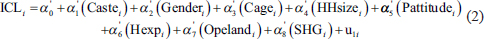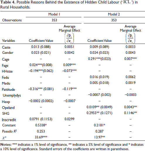 Equation (5) is the prime equation, and mainly its parameter estimation of ‘ICL’ is important to understand whether children’s participation in economic activities and domestic work as family labourers truly helps to improve the living standard of rural households by generating extra family income. There are a few possible factors which are responsible for the existence of ‘Hidden Child Labour’ in the sample households. All possible factors are mentioned in the selection equation.