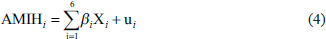 Now, the summary statistics of explanatory variables in Equation (5) and the outcome variable, AMIH, are described in Table A2 in Appendix B.