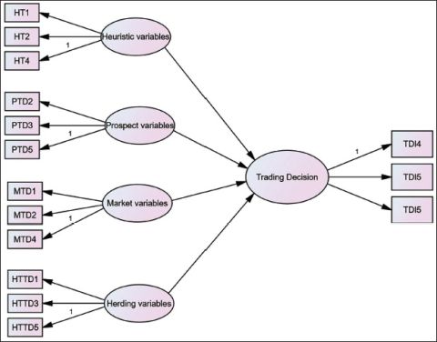 Note: HTD: Heuristic variable; PTD: Prospect variable; HTTD: Herding variable; MTD: Market variable; TDI: Trading decision.