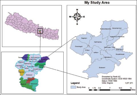 This study is conducted in the Kathmandu Valley, which comprises three districts: Kathmandu, Bhaktapur and Lalitpur, spanning a total area of approximately 570 km2 (220 miles2). Situated in Province 3 of Nepal, the valley lies between latitudes 27__degreesign32′13″–27__degreesign49′10″N and longitudes 85__degreesign11′31″–85__degreesign31′38″E. Kathmandu has a total population of 2,517,023, making it the most populous district in Nepal.