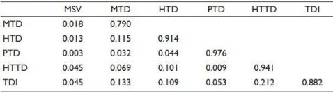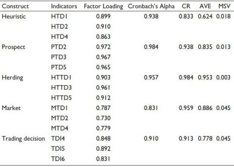 Note: HTD: Heuristic variable; HTTD: Herding variable; MSV: Maximum shared variance; MTD: Market variable; PTD: Prospect variable; TDI: Trading decision.